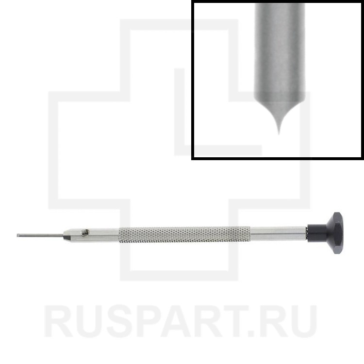 Часовая отвертка. Рифленая стальная рукоятка, шестиугольная поворотная головка рукоятки с подшипником и съемные Т-образные жала из закаленной стали. Специальная заточка жала. Поставляется поштучно.