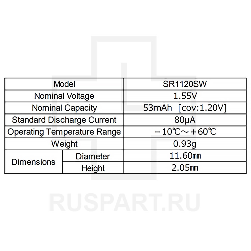 Батарейка кнопочная, оксид серебра RENATA SR1120SWОписание: упаковка 10 шт