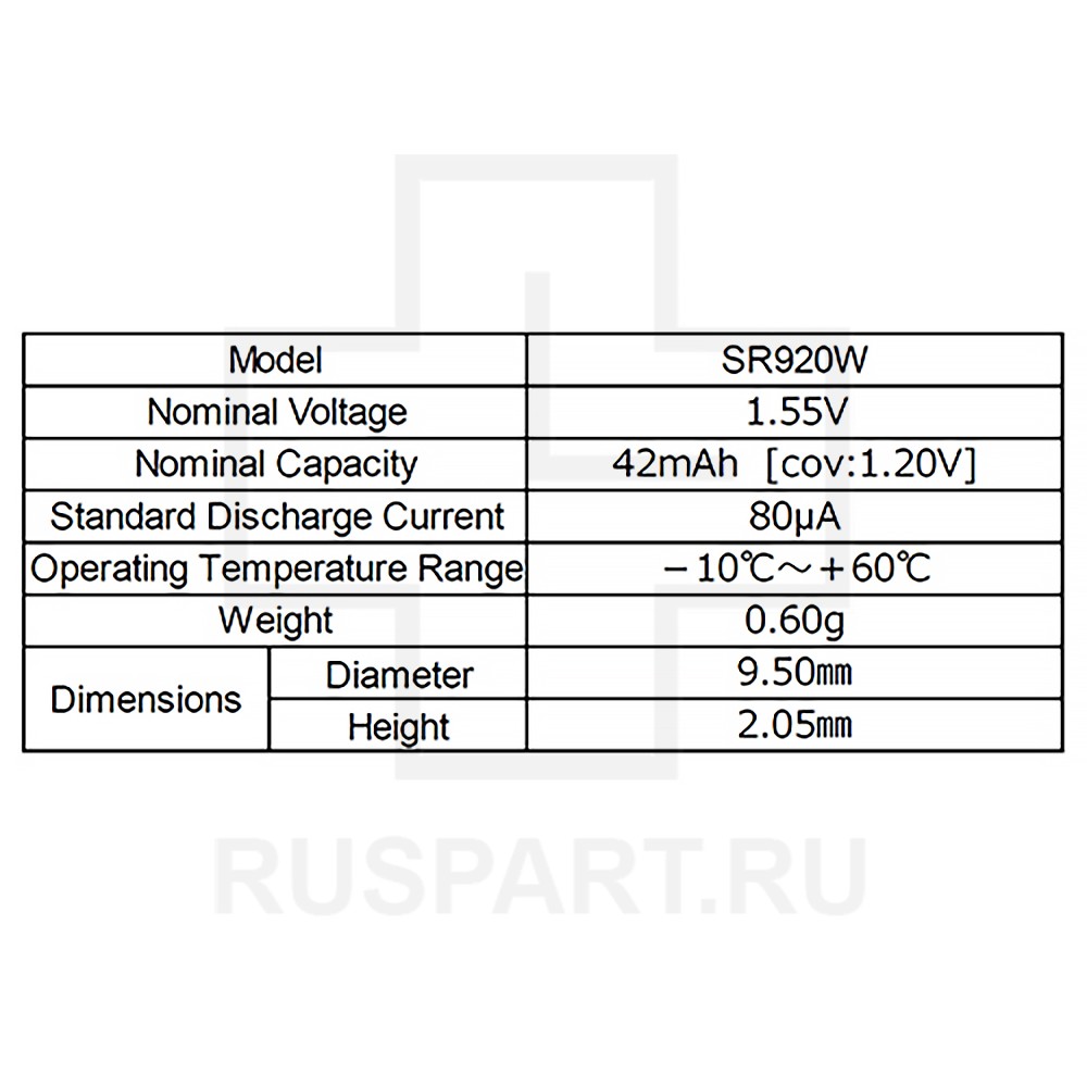 Батарейка кнопочная, оксид серебра RENATA SR920WОписание: упаковка 10 шт