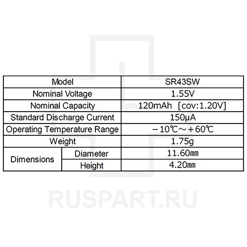 Батарейка кнопочная, оксид серебра RENATA SR43SWОписание: упаковка 10 шт