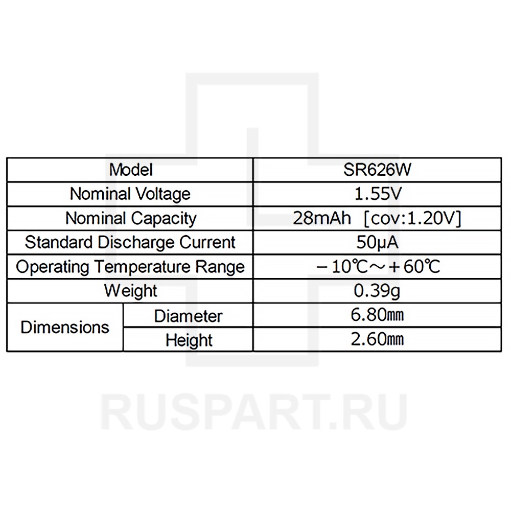 Батарейка кнопочная, оксид серебра RENATA SR626WОписание: упаковка 10 шт