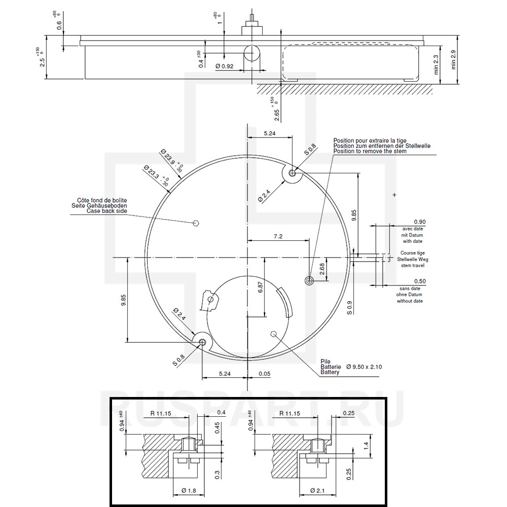 Механизм часовой в сборе RONDA 704 HH1 D3