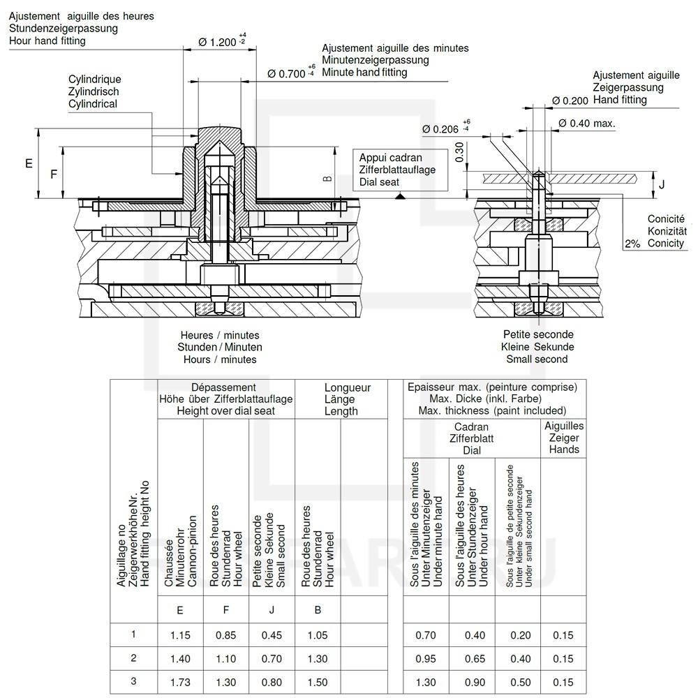 MOVEMENT RONDA 1004, SIZE 10 1/2''', SWISS MADE, 2 HANDS, AIG1 (HAND FITTING HEIGHT No 1)