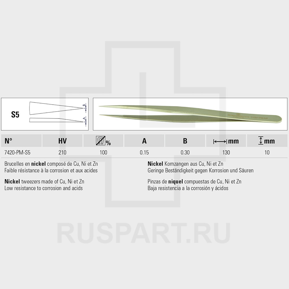 Пинцет из никеля BERGEON BG7420-PM-S5 (b-1065-B5B, b-7420-PM-B5, b-7420-PM-S5, BG7420-PM-B5)