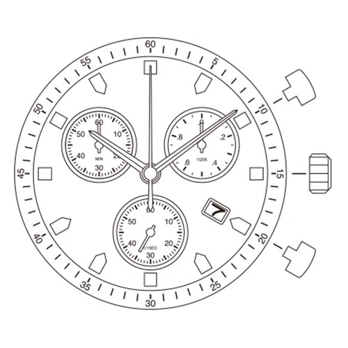 MOVEMENT MIYOTA 6S30, SIZE 15''', 3 HANDS, STANDARD HAND HEIGHT, DATE AT 4 TILT