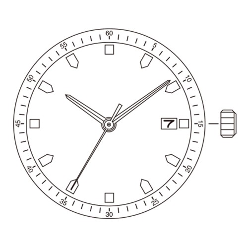 MOVEMENT MIYOTA 9015, SIZE 11 1/2''', 3 HANDS, STANDARD HAND HEIGHT, DATE AT 3