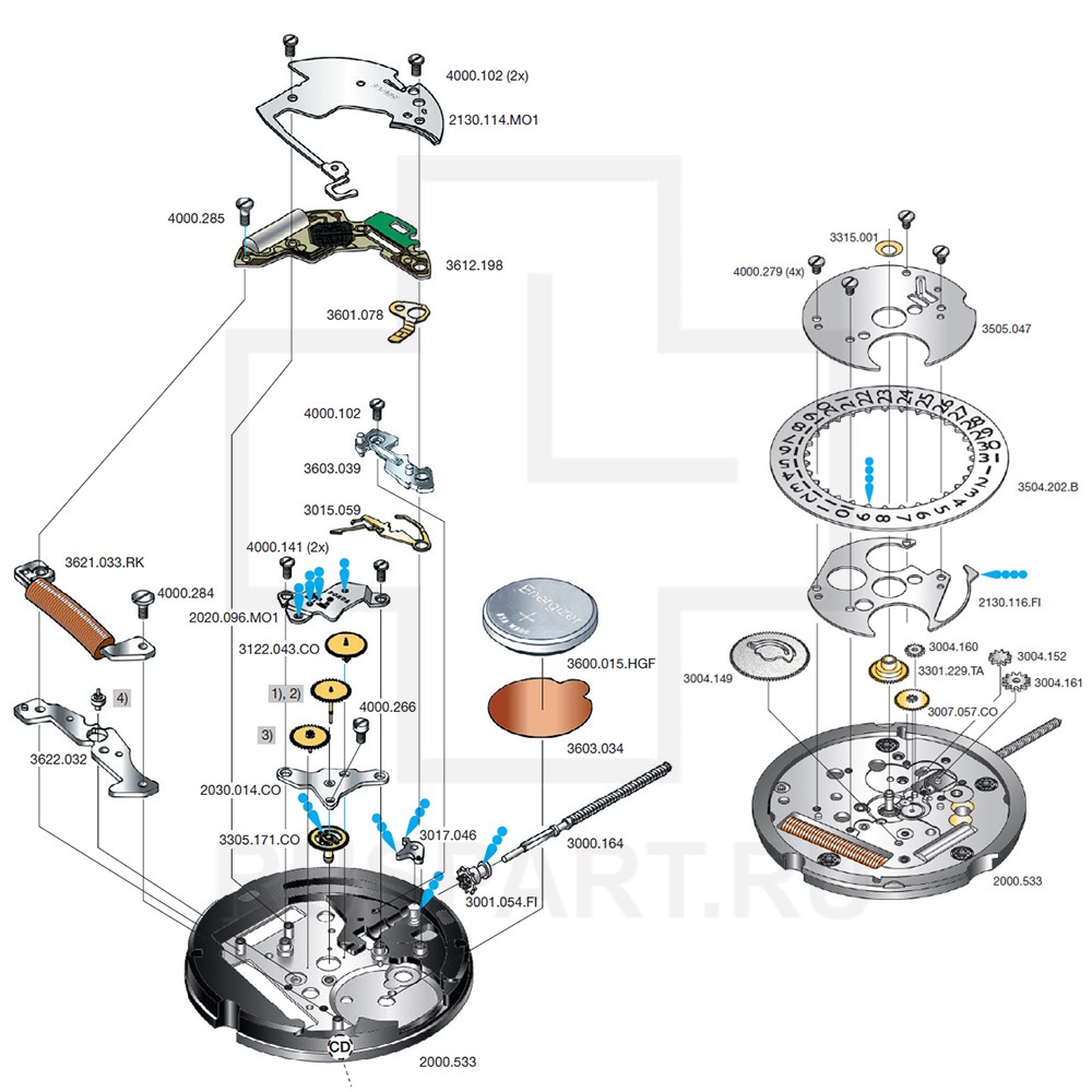 Механизм часовой в сборе RONDA 505 HH2 D3