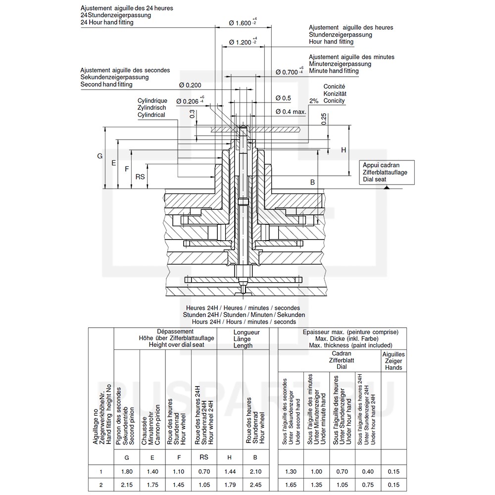 MOVEMENT RONDA 515.24H, SIZE 11 1/2''', 4 HANDS, AIG2, HH2 (HAND FITTING HEIGHT No 2), DATE AT 3, DUAL TIME BY HAND