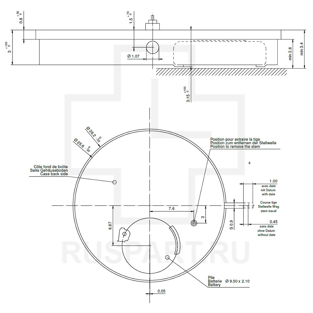 Механизм часовой в сборе RONDA 517 HH2 D3D3