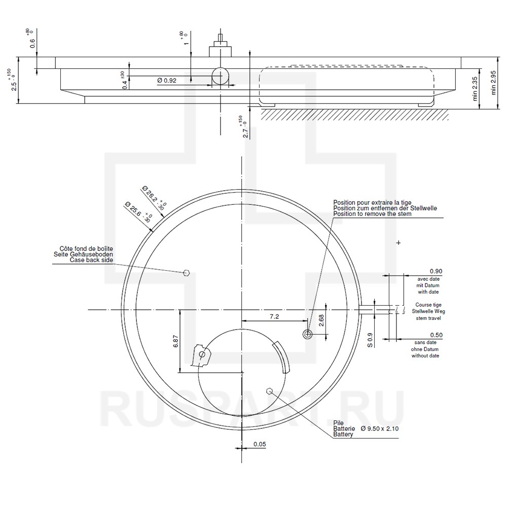 MOVEMENT RONDA 713, SIZE 11 1/2''', 3 HANDS, AIG3, HH3 (HAND FITTING HEIGHT No 3)