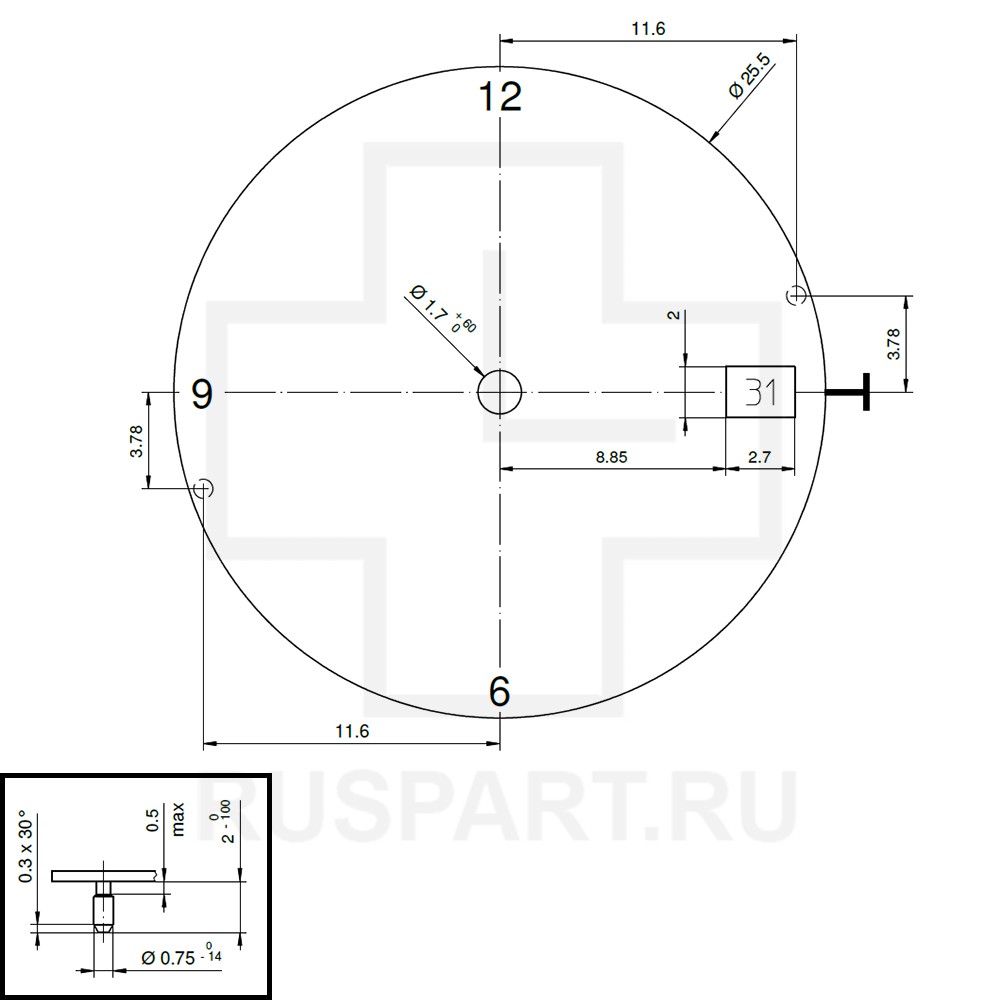 Переводной вал RONDA 772Описание: 0,9 20MM