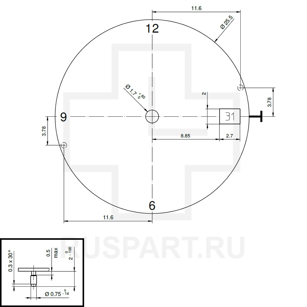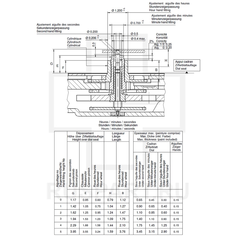 Высота секундной оси 2.29 мм.