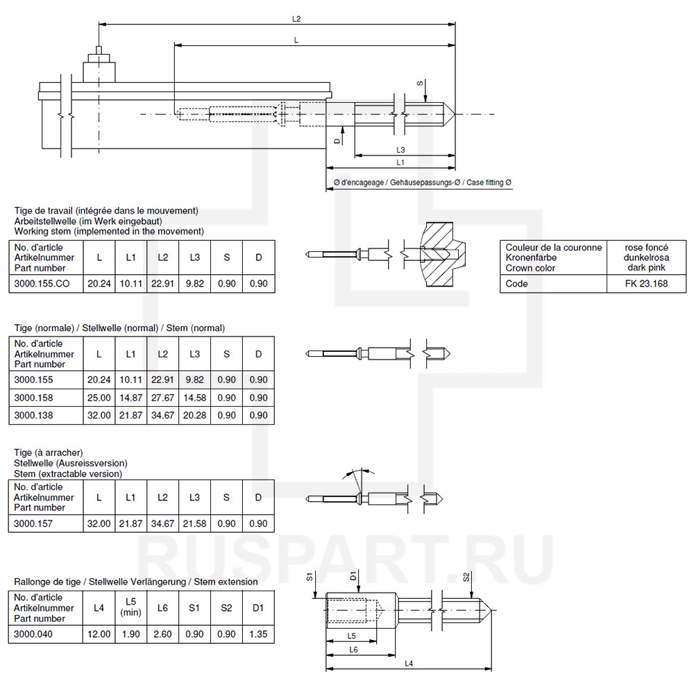 Переводной вал RONDA 772Описание: 0,9 20MM