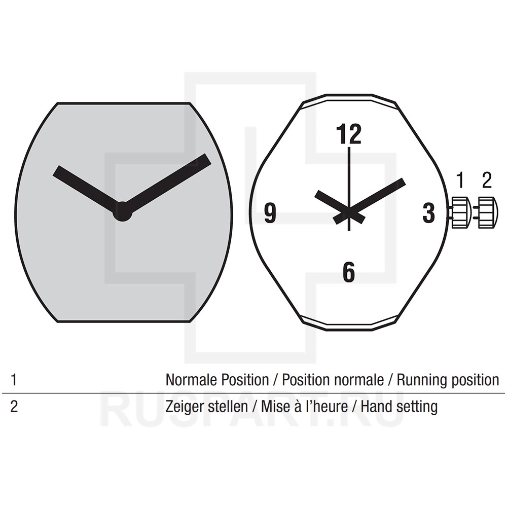 MOVEMENT RONDA 751.24, SIZE 5 1/2''', 2 HANDS, AIG1 (HAND FITTING HEIGHT No 1), 24 HOUR BY HAND