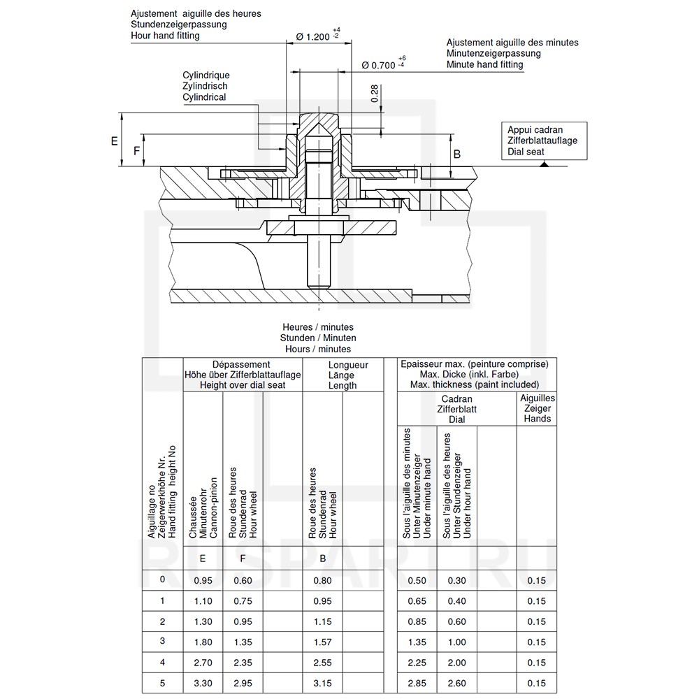 Механизм часовой в сборе RONDA 751 HH1Описание: MOVEMENT RONDA 751, SIZE 5 1/2''', SWISS MADE, 2 HANDS, AIG1, HH1 (HAND FITTING HEIGHT No 1)