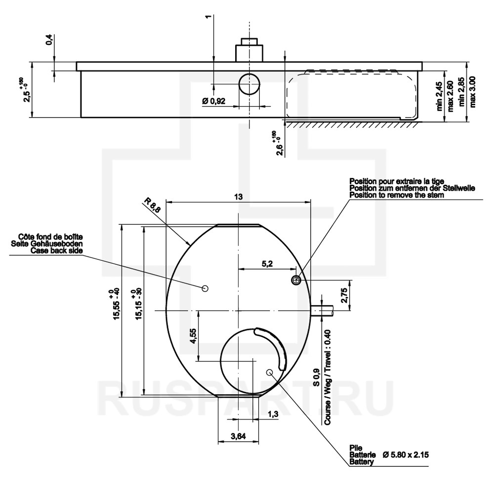 Механизм часовой в сборе RONDA 751E HH3 - SALEОписание: MOVEMENT RONDA 751E, SIZE 5 1/2''', SWISS MADE, 2 HANDS, AIG3, HH3 (HAND FITTING HEIGHT No 3)