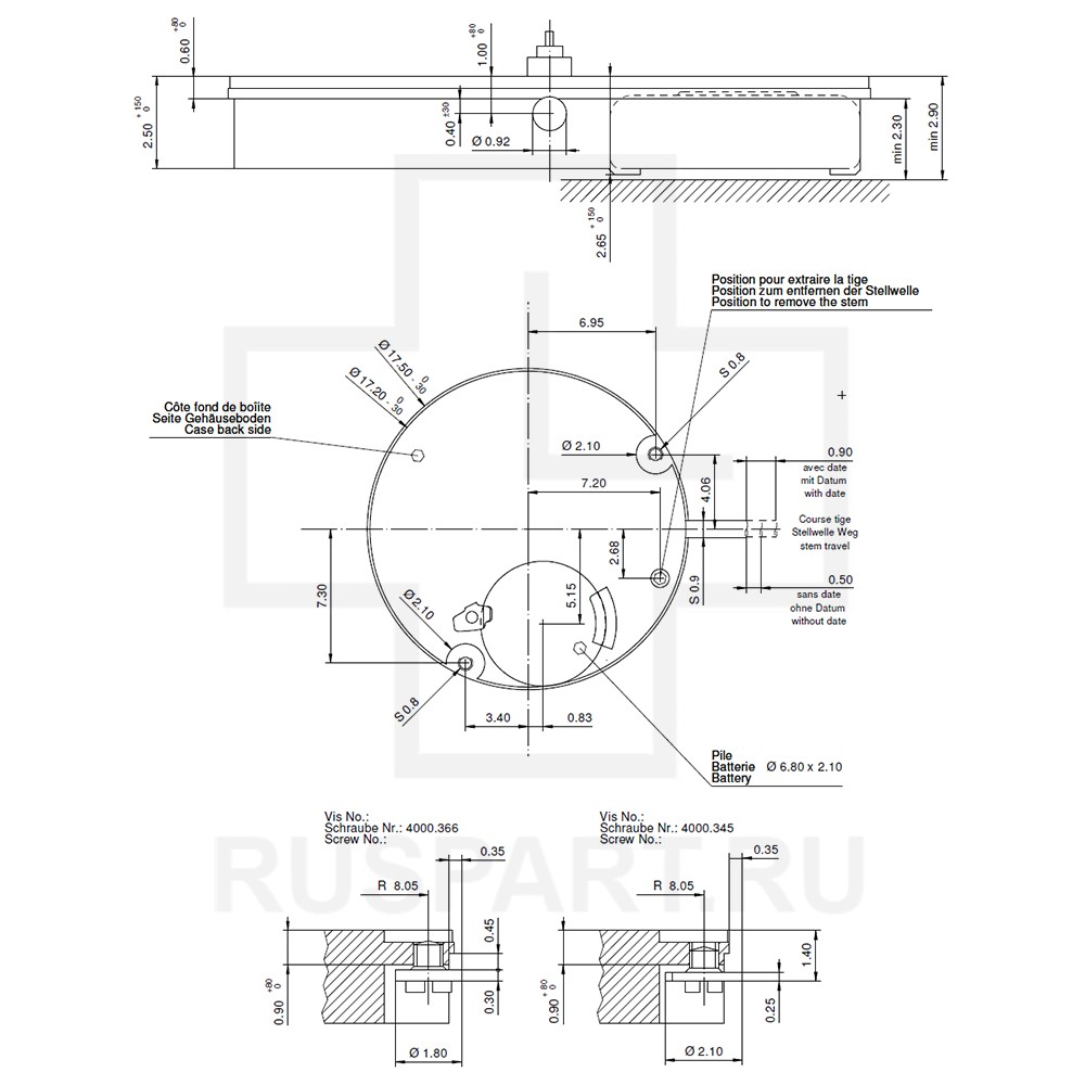 Механизм часовой в сборе RONDA 775 HH0 D3