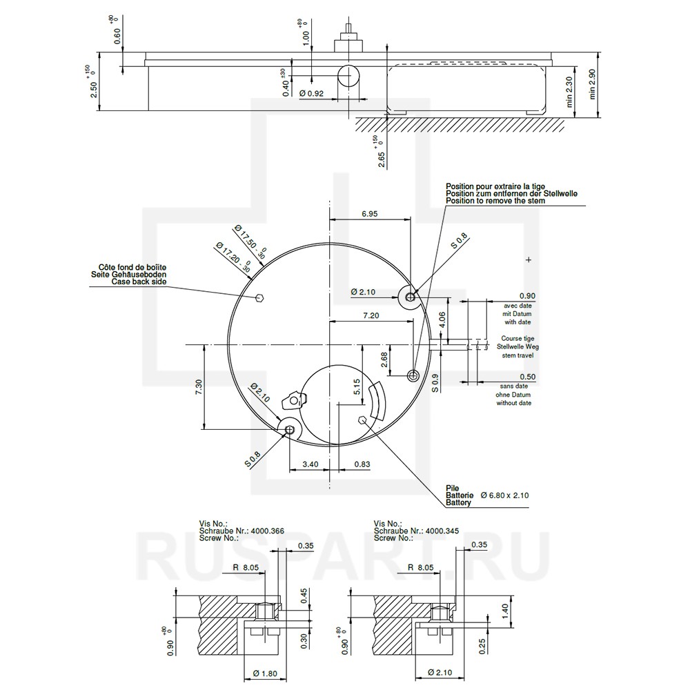 Механизм часовой в сборе RONDA 775 HH3 D3