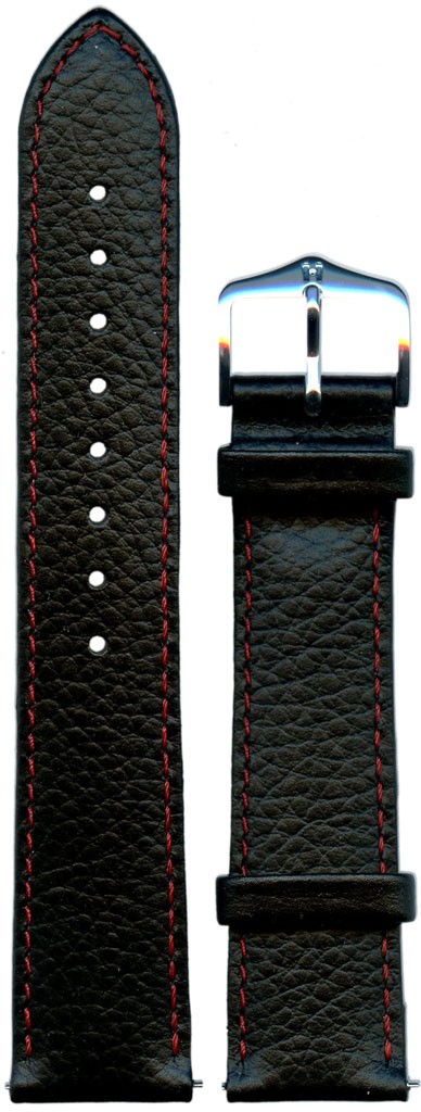 Ремешок из натуральной кожи, гладкий, черный, 20/18 mm, стальной замок.