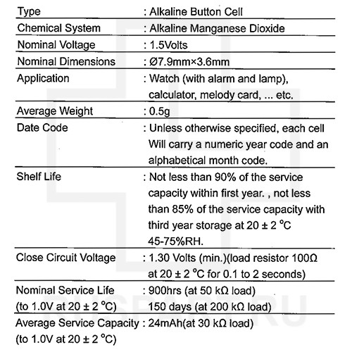 Батарейка кнопочная, оксид серебра Seizaiken SR41SWОписание: новая упаковка